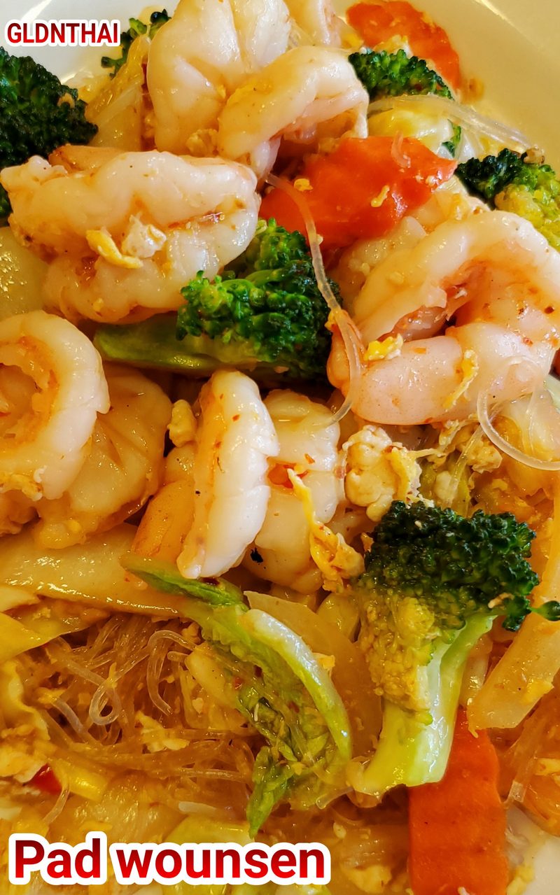 Glass noodles, egg, fresh garlic, bean sprouts, Napa cabbages, carrot, broccoli, and onions